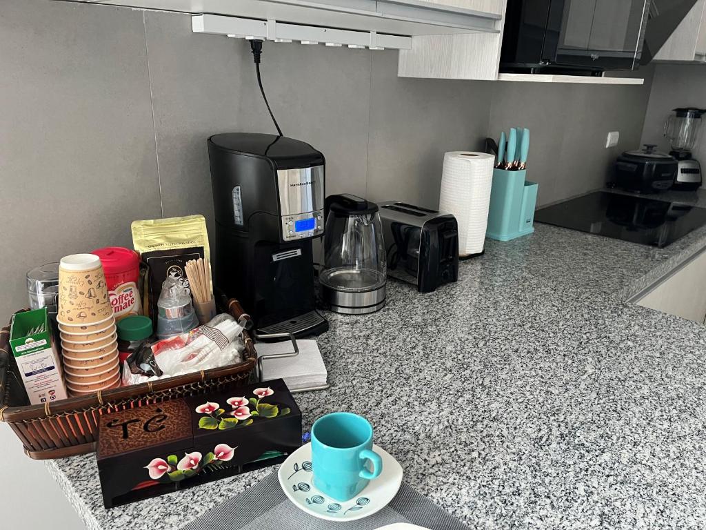 New luxury apartment with king - size bed Ceibos cuenta con un snack bar en el establecimiento.